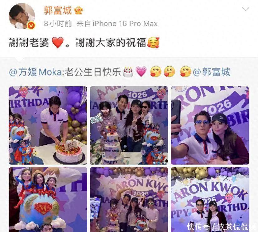 方媛为老公庆祝六十大寿,晒出很多美照。郭富城也转发老婆的动态,谢谢老婆,谢谢大家的祝福。