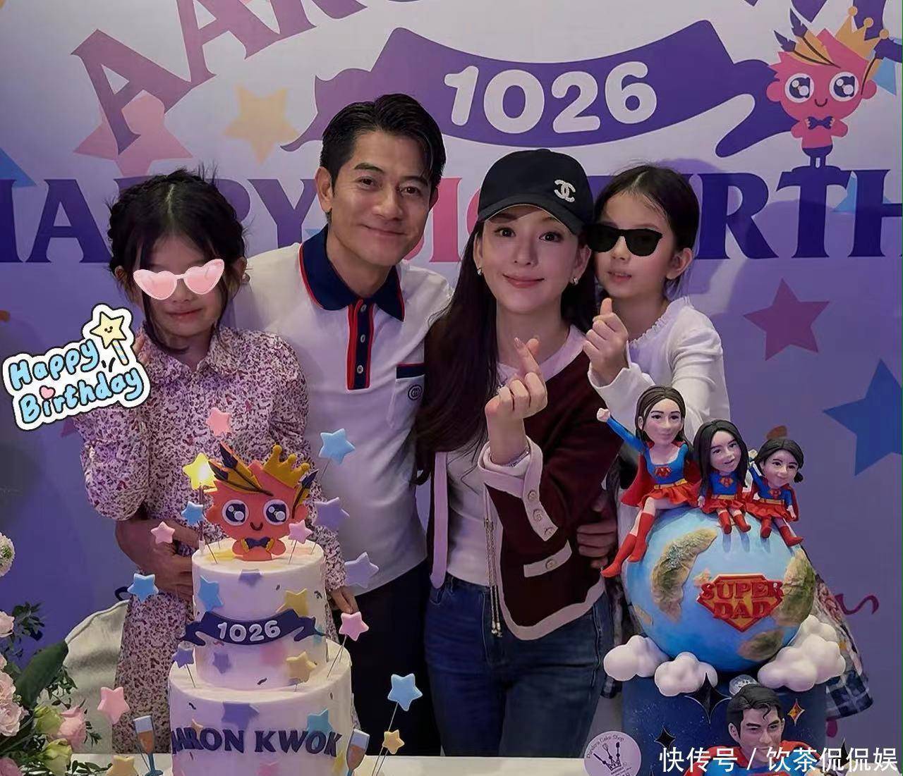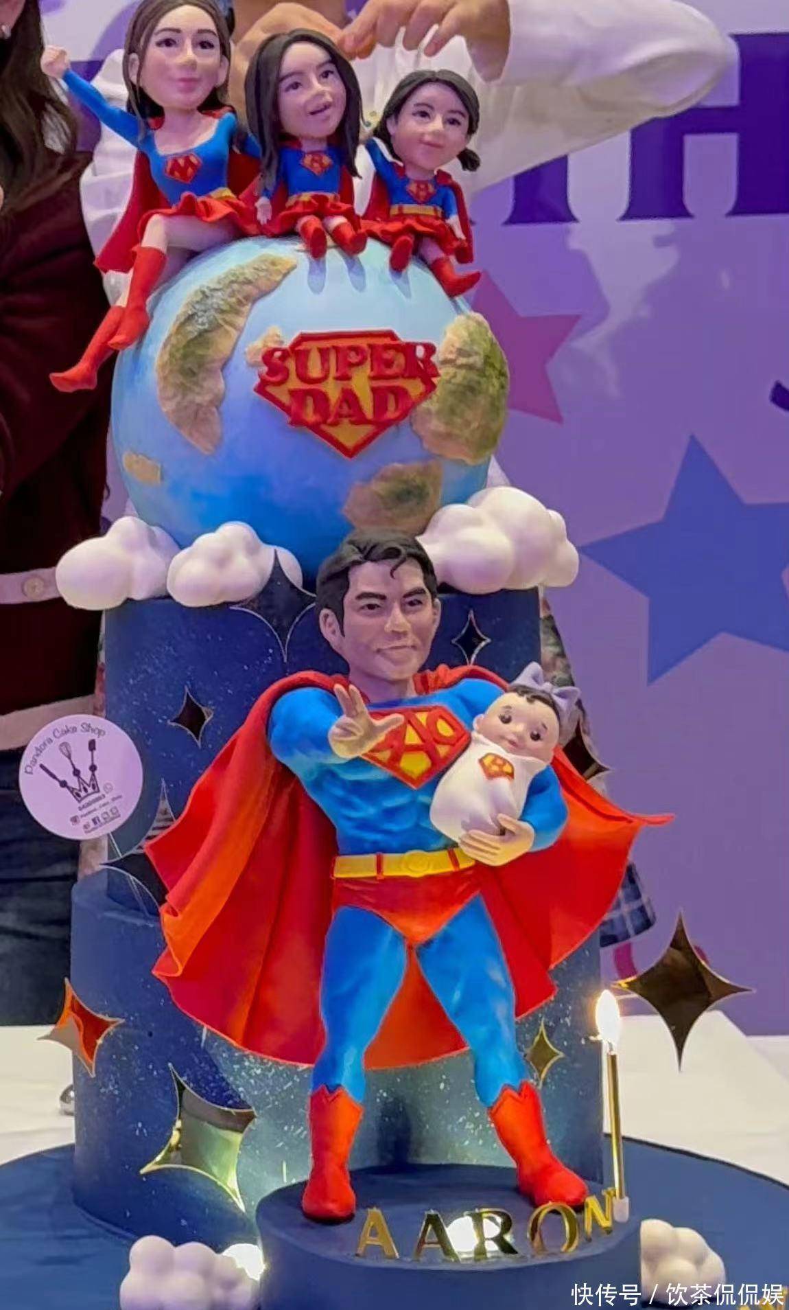 这个蛋糕做得也是很棒,郭天王变身超人,单手抱宝宝,妈妈方媛带着两个女儿坐在爸爸身后,这也是满满的爱意。他们是超人家庭,很可爱。
